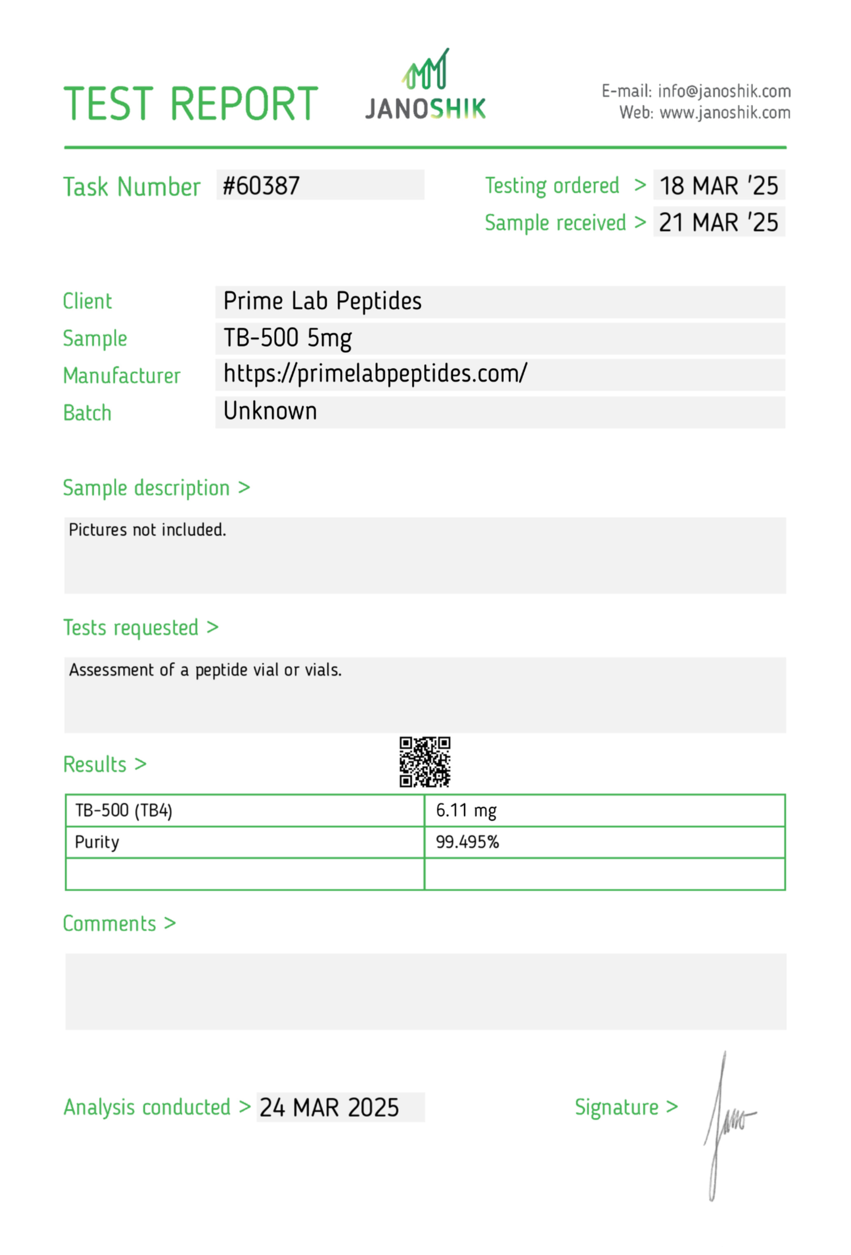TB-500 (Thymosin Beta-4) (43 AA is a synthetic peptide fragment consisting of 43 amino acids, widely studied for its role in cell migration and tissue regeneration research.